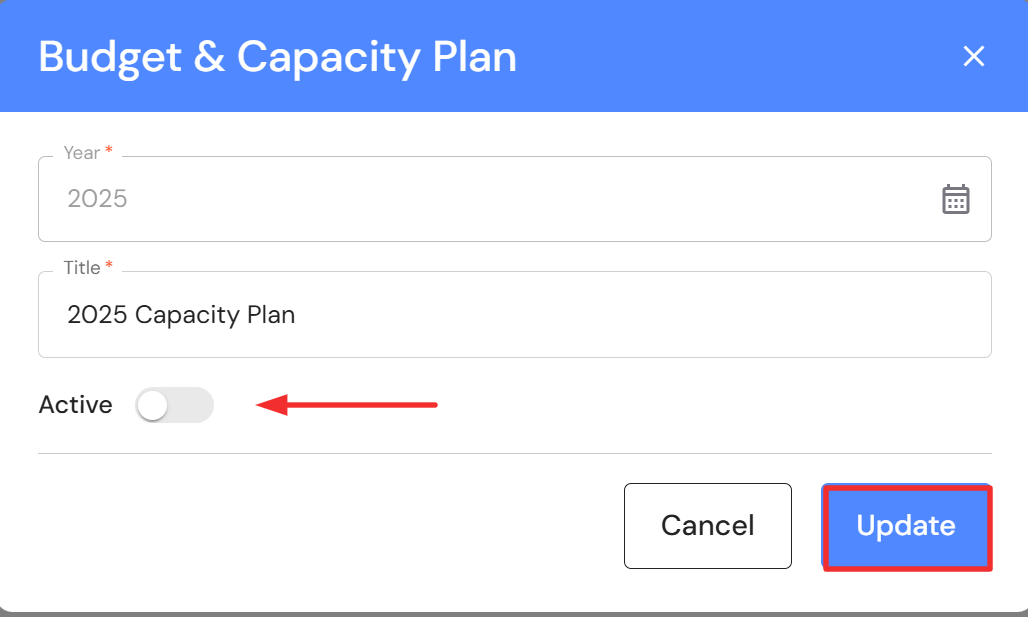 The default FAB5 dashboard is defined by the newest active Budget & Capacity plan. This means, if you have two active Budget & Capacity plans in the same financial year, the FAB5 dashboard associated with the newest Budget & Capacity plan will be displayed by default.