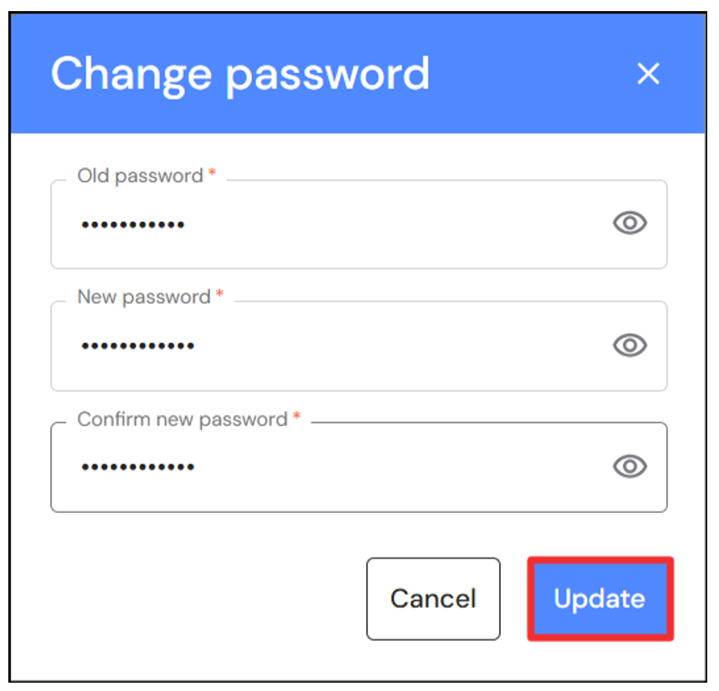 To change your password in app, go to your user profile in the top right corner and click on 'Edit profile'.