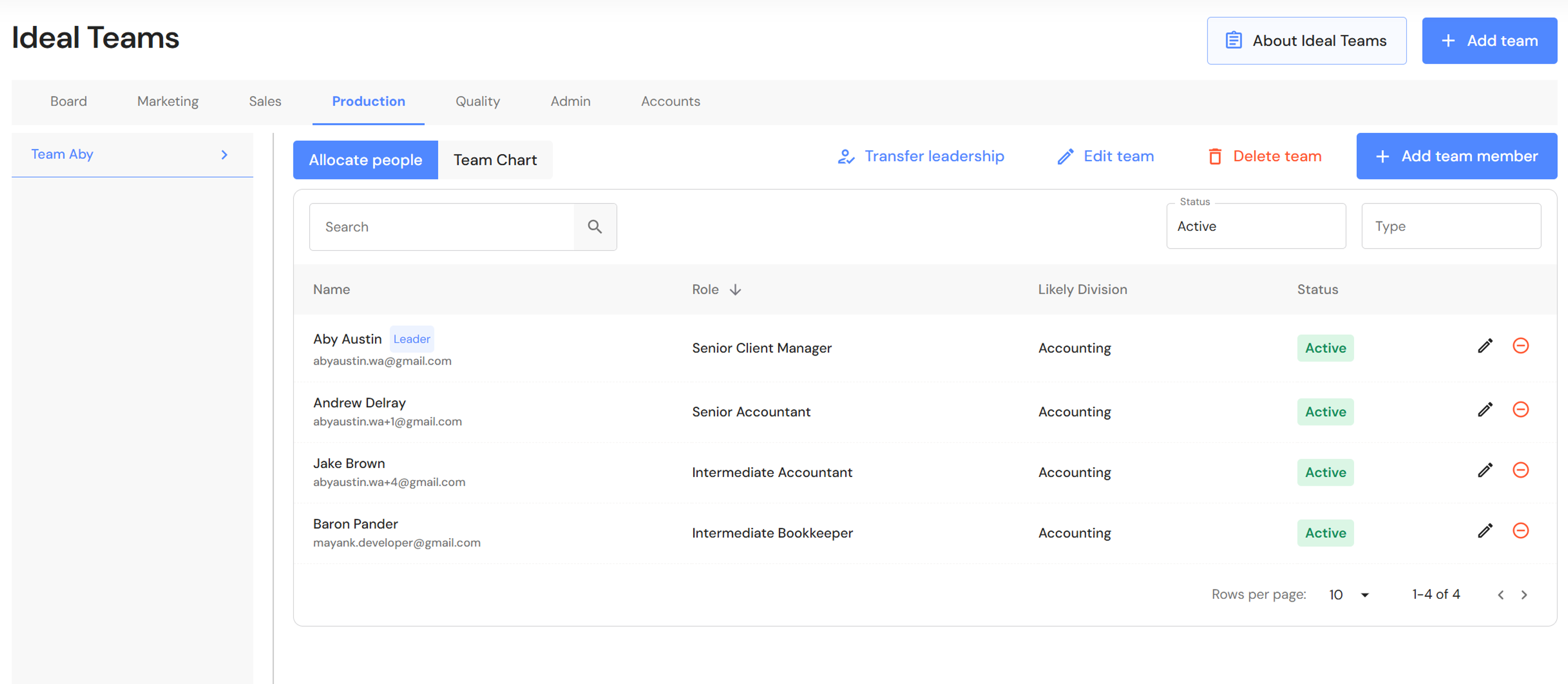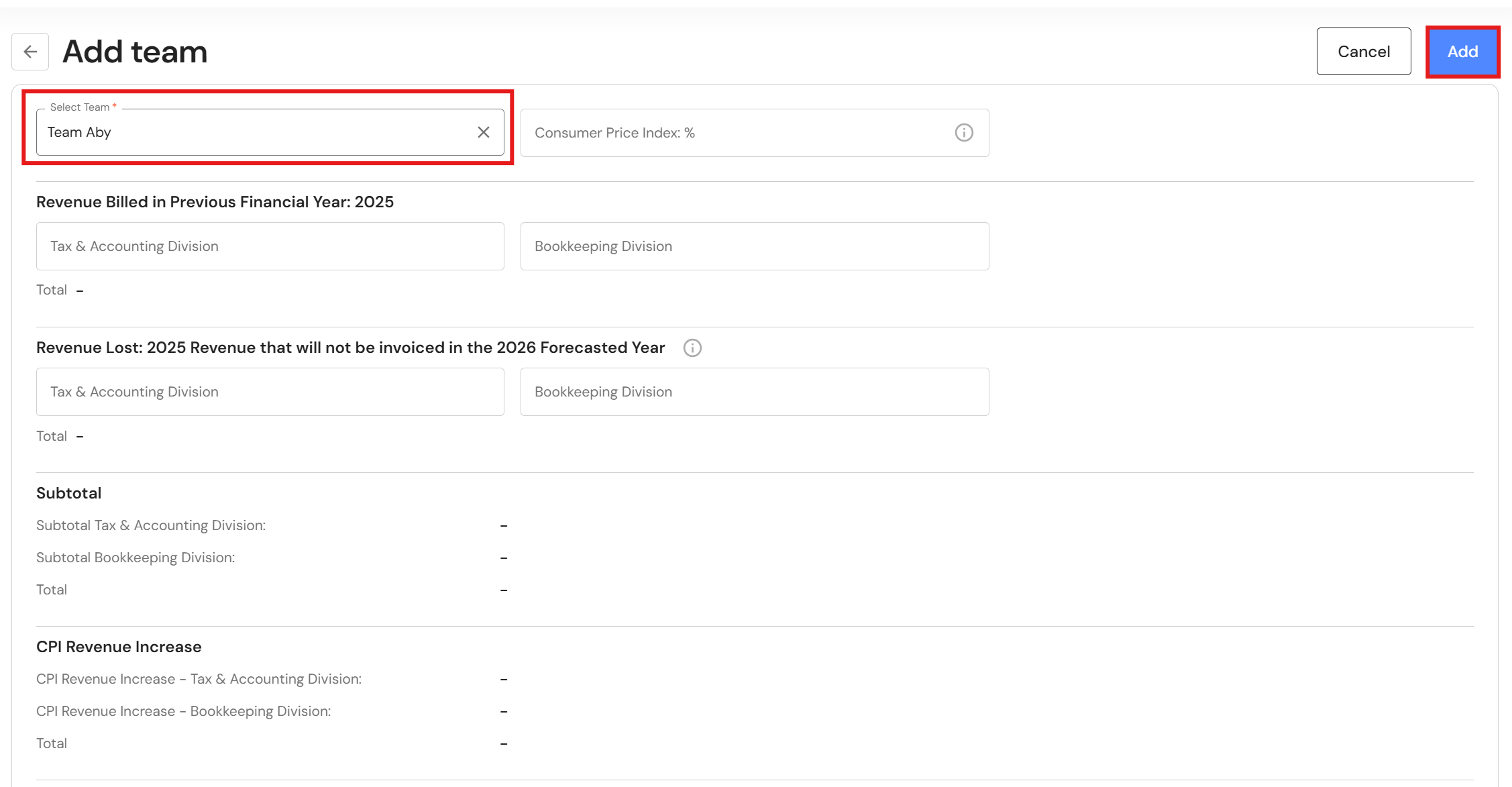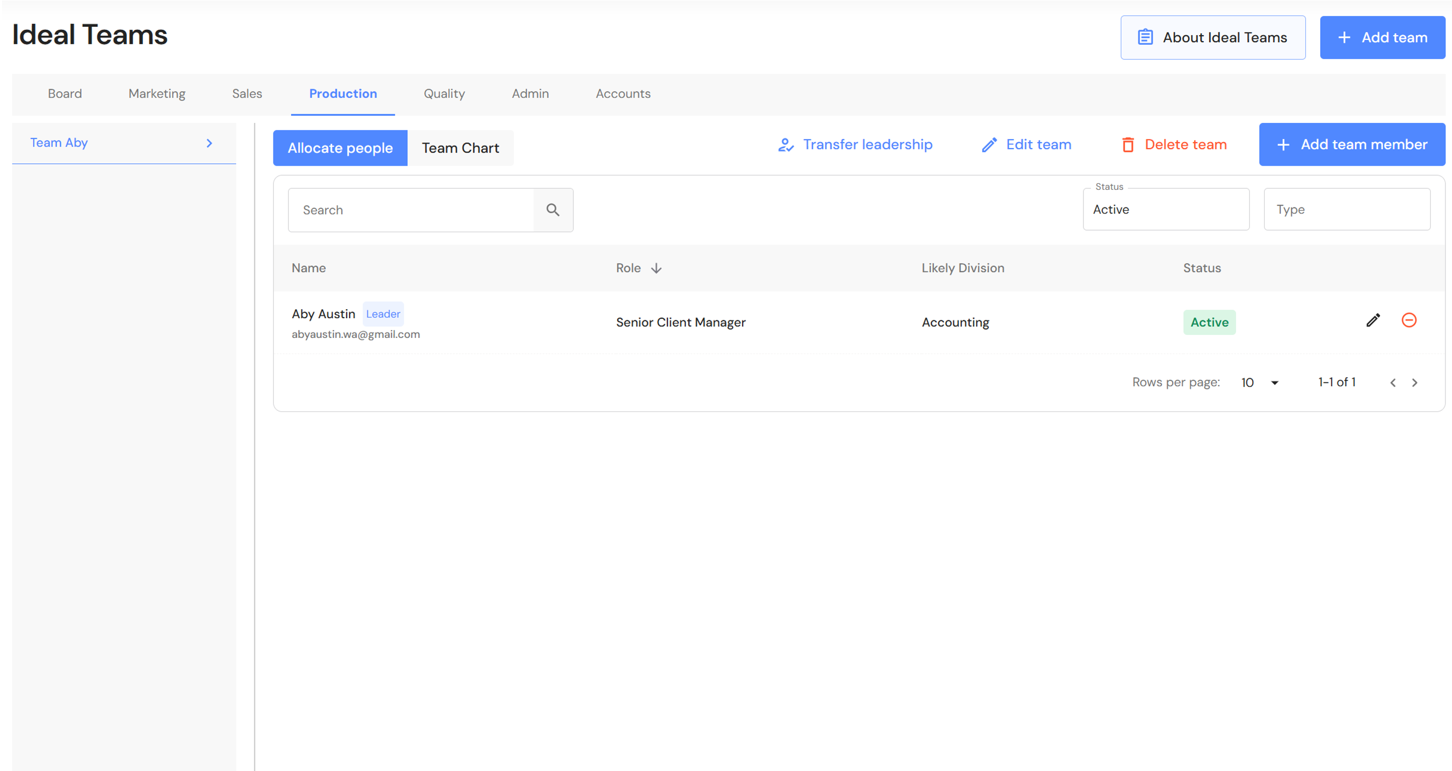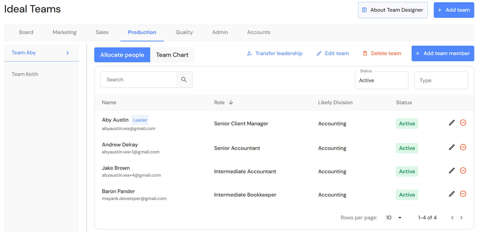 - Click on '+ Add team member' and add chargeable team members to each team.
