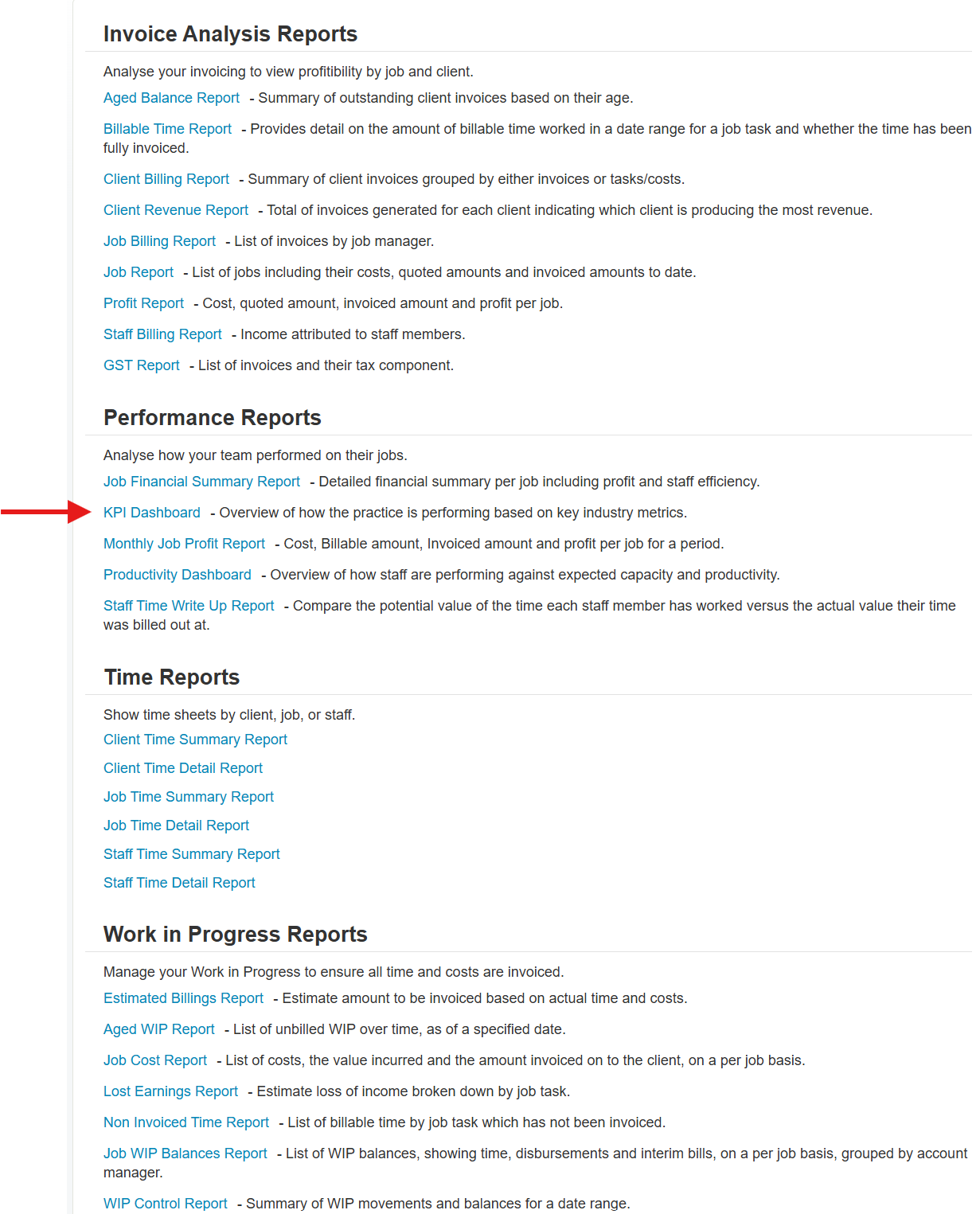- Under Performance Reports, click on KPI Dashboard.