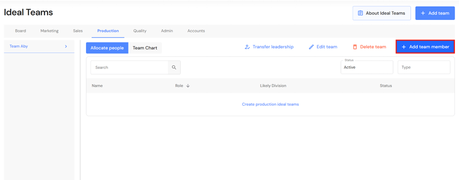 - In the Production tab, click on '+ Add team'.