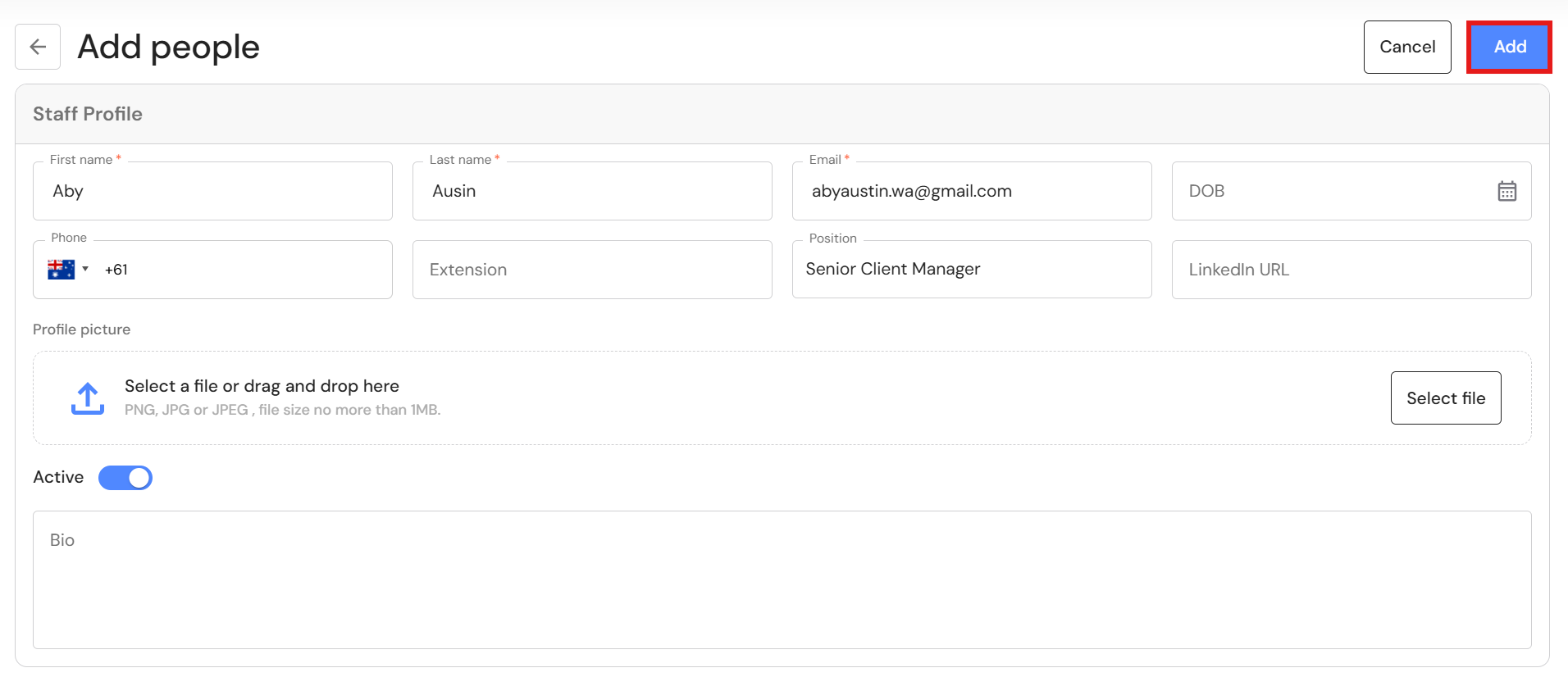NB* The role assigned to the team member's profile in People will automatically prefill however, you can change the role to a production role from the dropdown list. - Click on 'Create'.