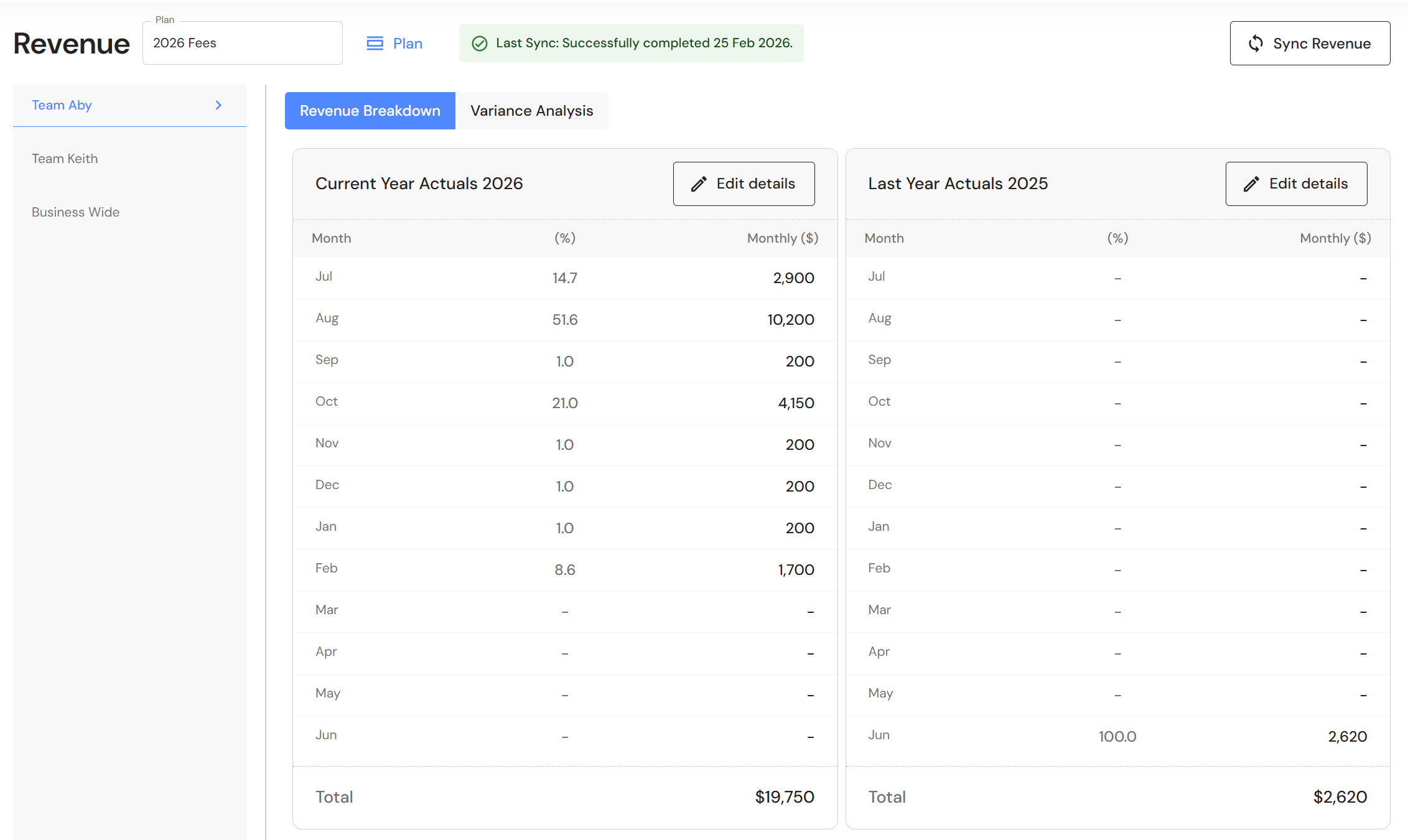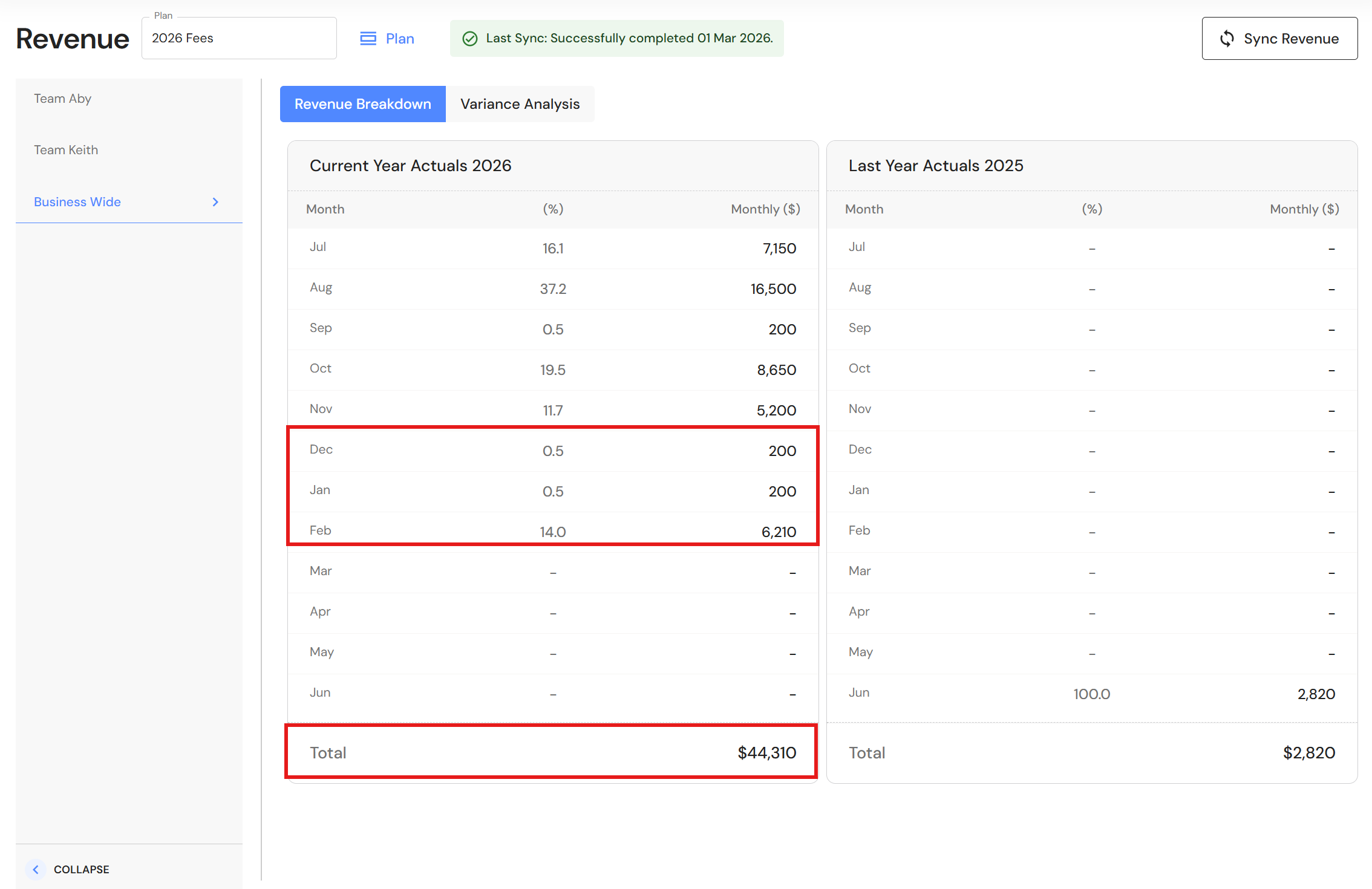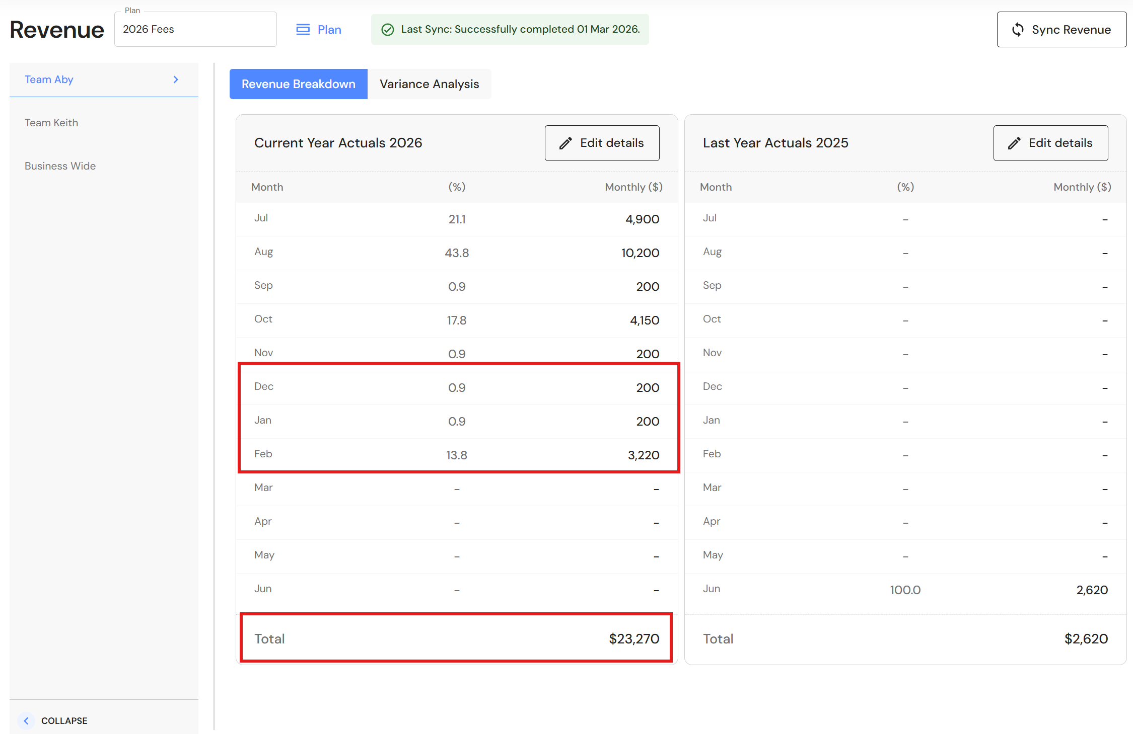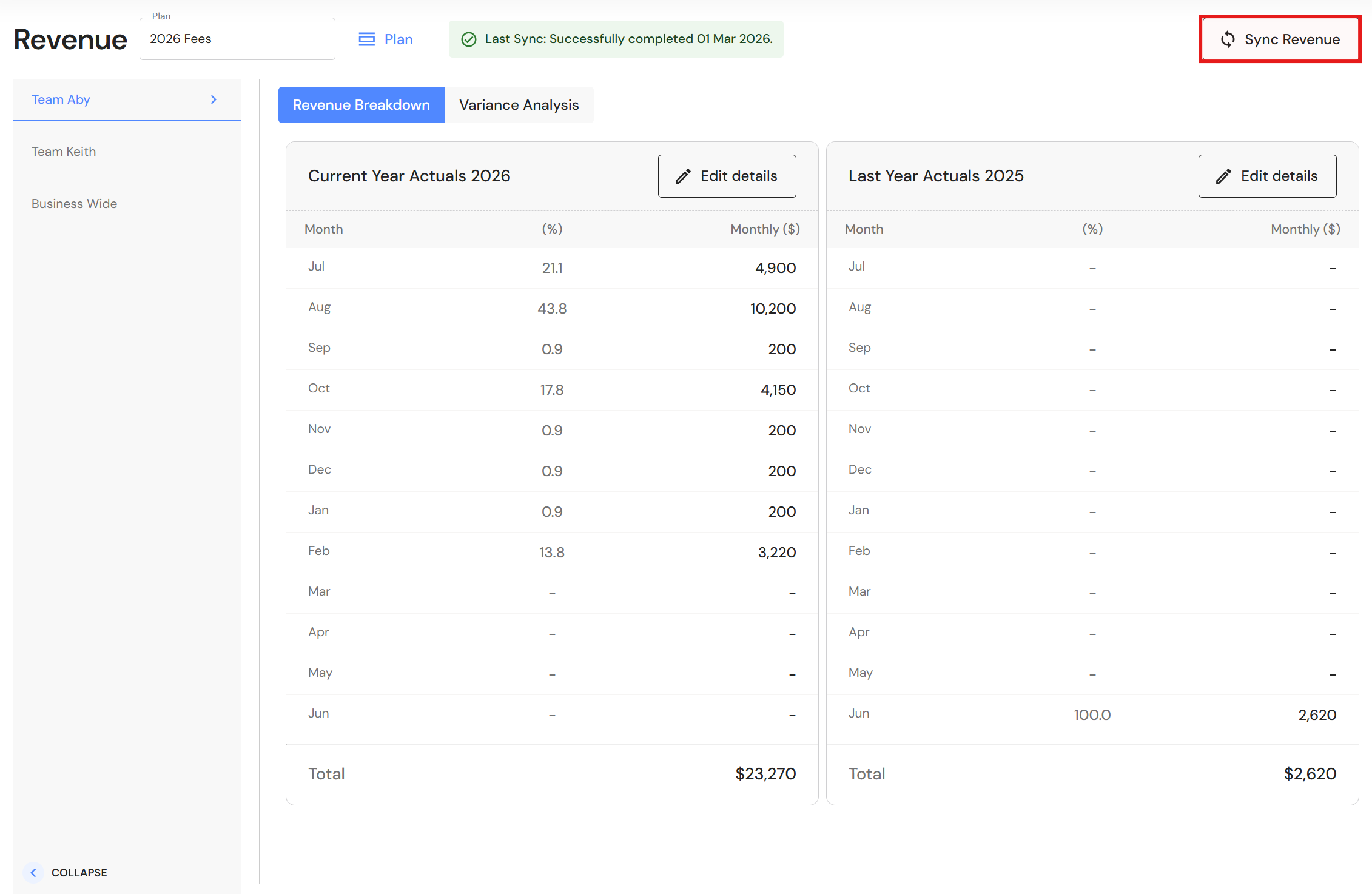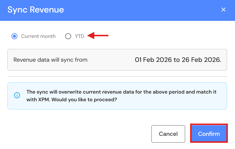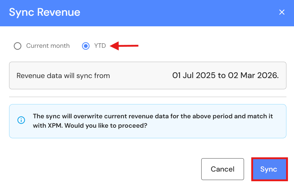 - Select 'YTD' and click on 'Sync' to refresh and align data.