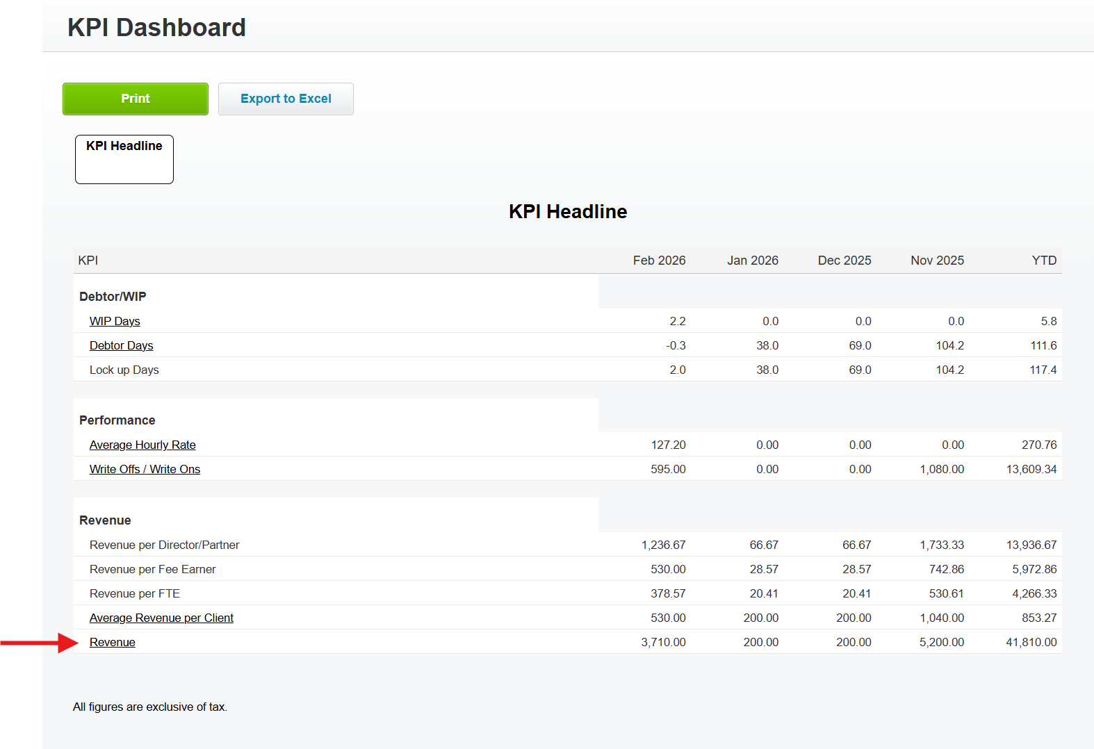 - In the KPI Dashboard, click on Revenue.