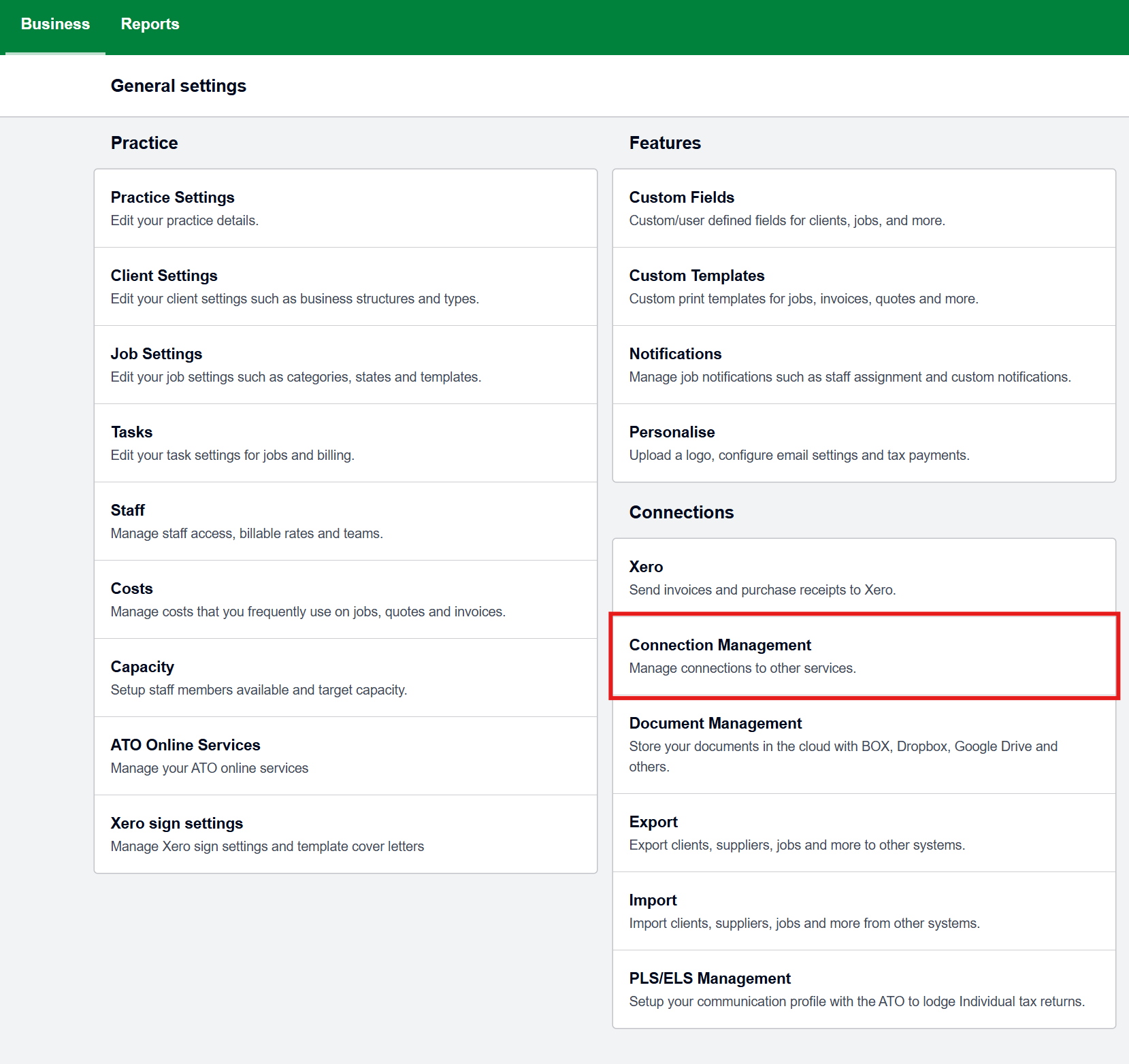 - While your XPM tenant is no longer connected, XPM does not automatically remove the app even though the connection has been removed. Remove old connections in XPM via Business > Settings > Connection Management.