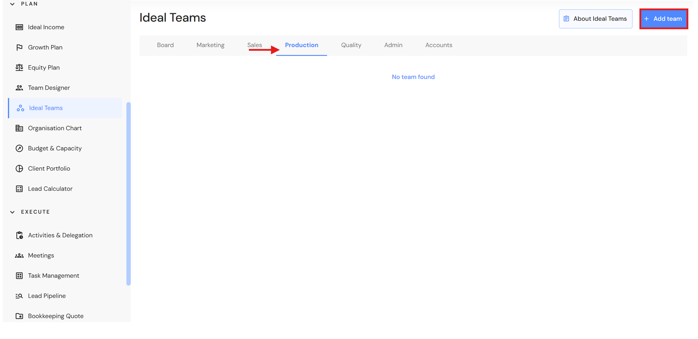 Go to Plan > Ideal Teams
