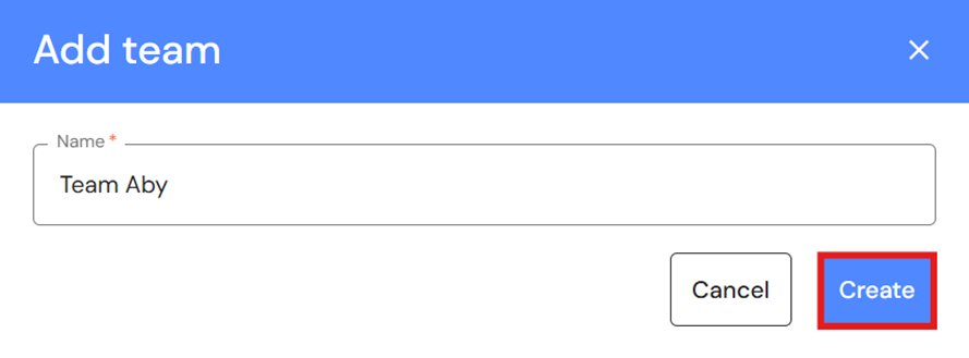 - Type a team name and click on 'Create'.