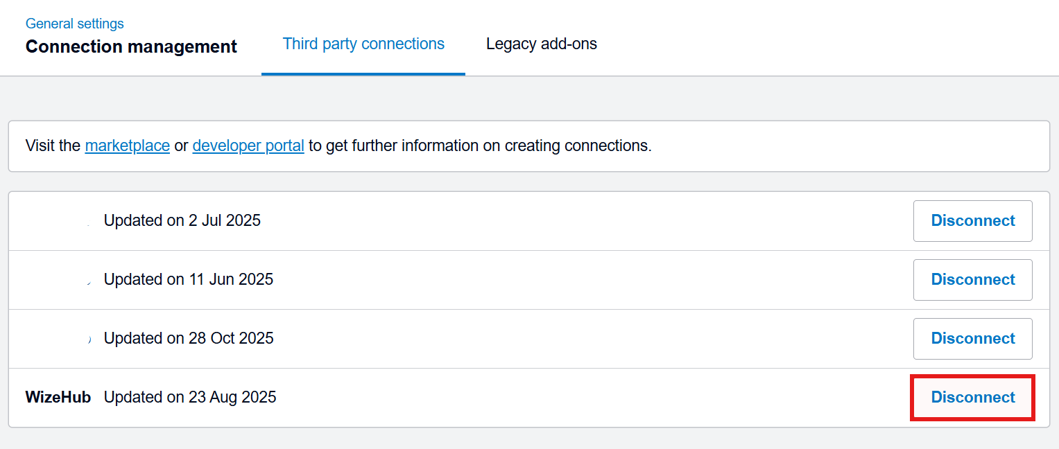 - Click 'Disconnect' to remove third party connection.