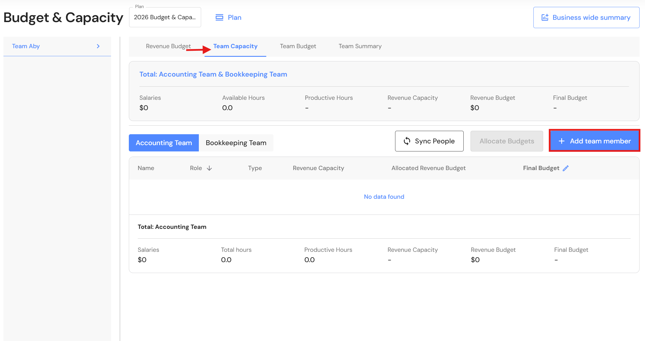 For successful syncing, Partners or Managers must appear in the Team Capacity tab — otherwise data won’t map to the correct team.