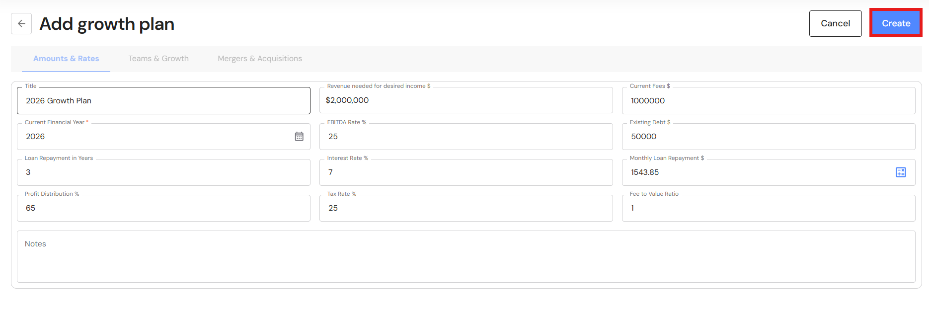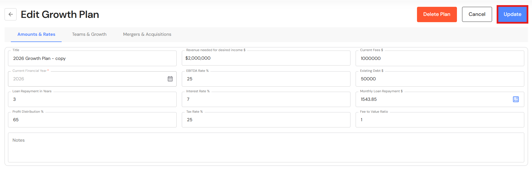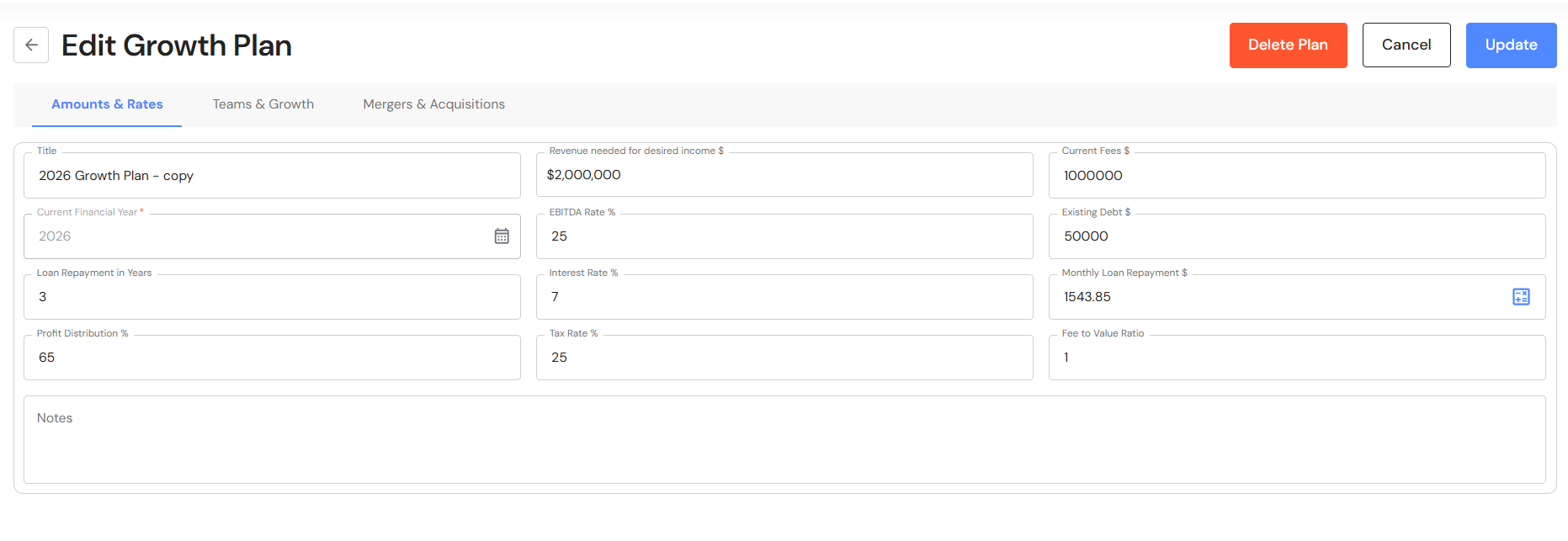 - Your Growth Plan will show the impact of revenue through acquisitions as well as any loans attached to the acquisition. In addition, the year the business reaches your revenue and ideal income goals will be brought forward.