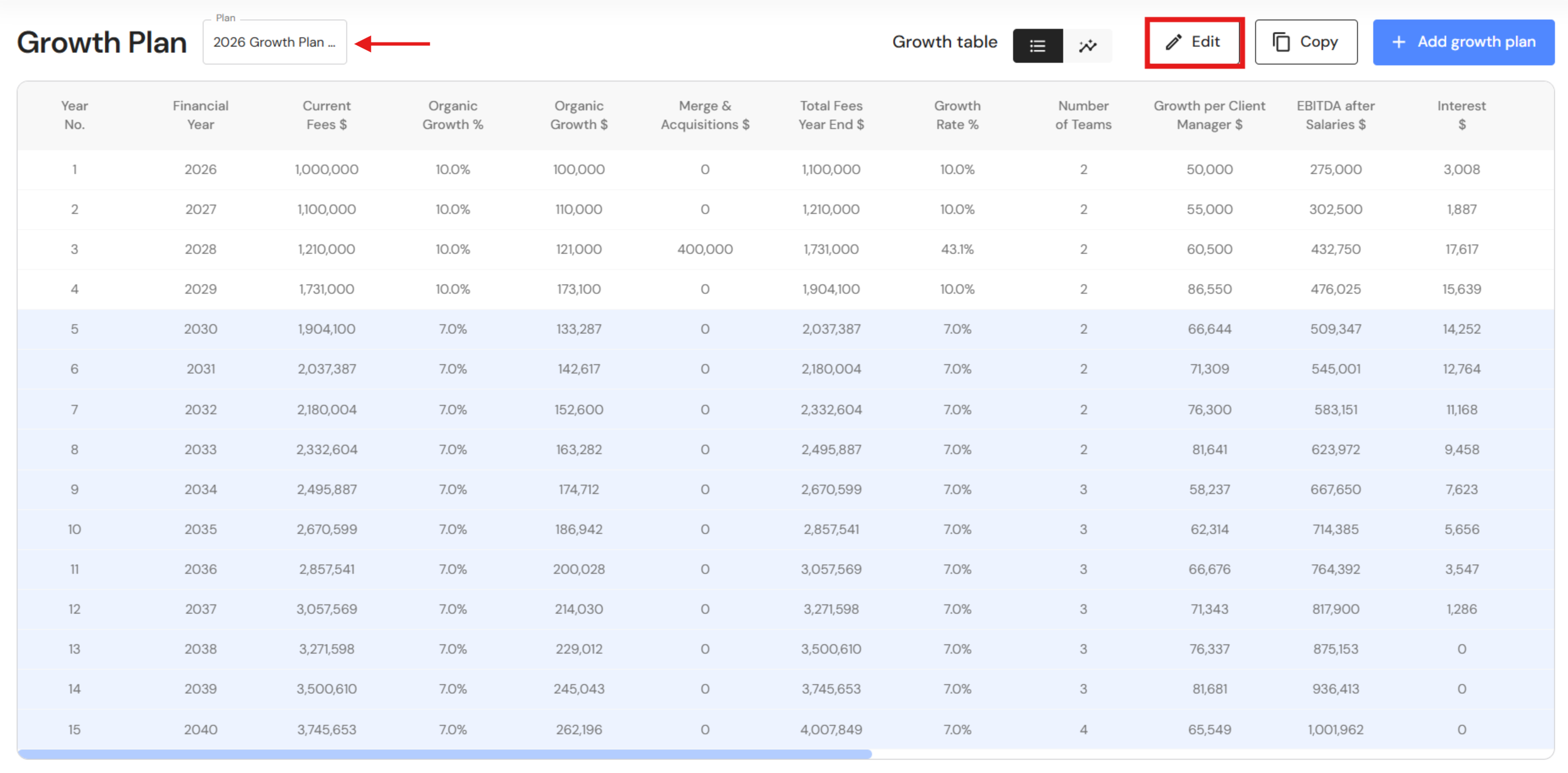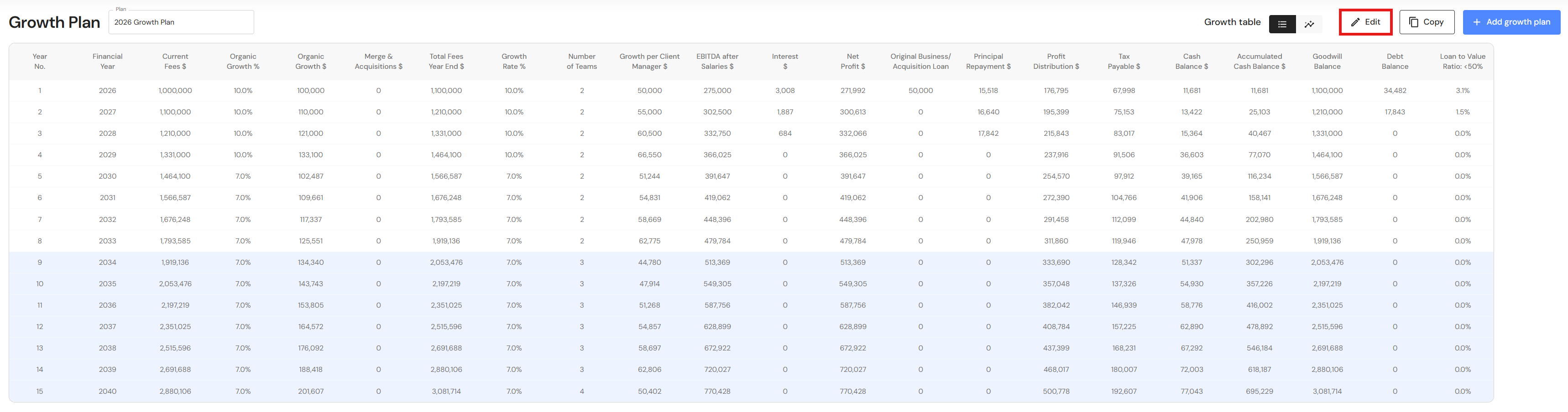 - Click on 'Edit' to open the Growth Plan settings.