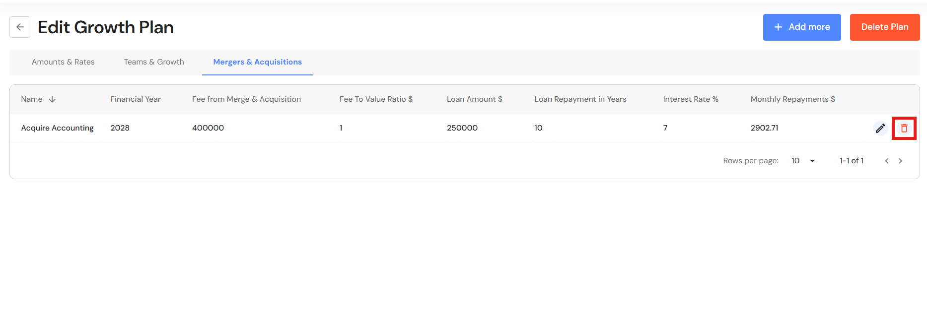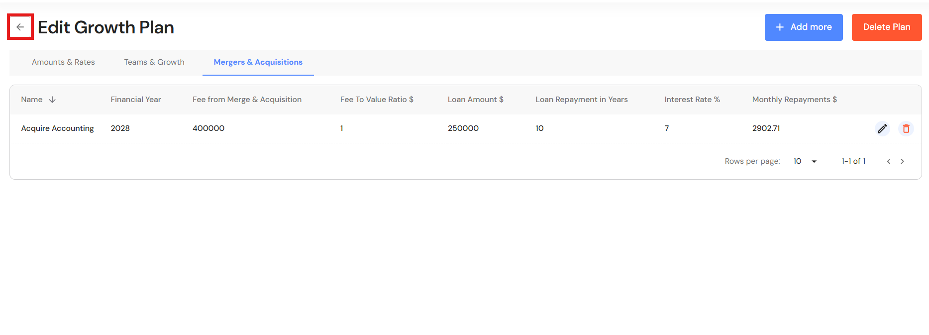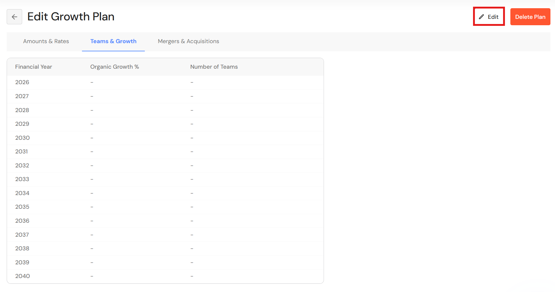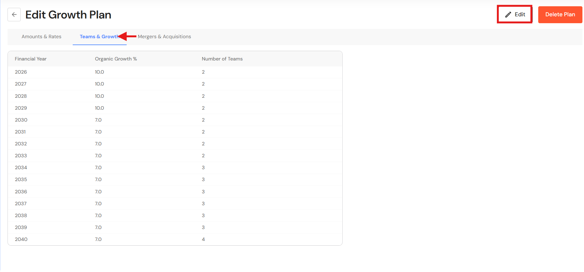 Refer to Edit a Growth Plan: Amounts & Rates, Edit a Growth Plan: Teams & Growth, and Add or Edit Mergers & Acquisitions above.