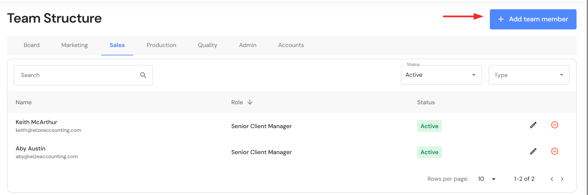 Ideal Teams is where you build your business with the most important attribute - your People. Here, you will add team members to each division along with a division specific role.