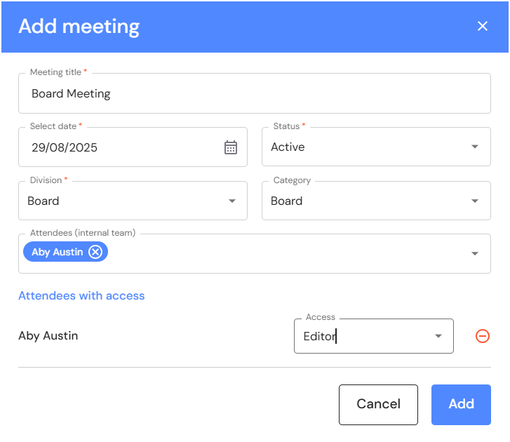 - Include additional attendees (optional). Select Viewer or Editor access for each attendee.