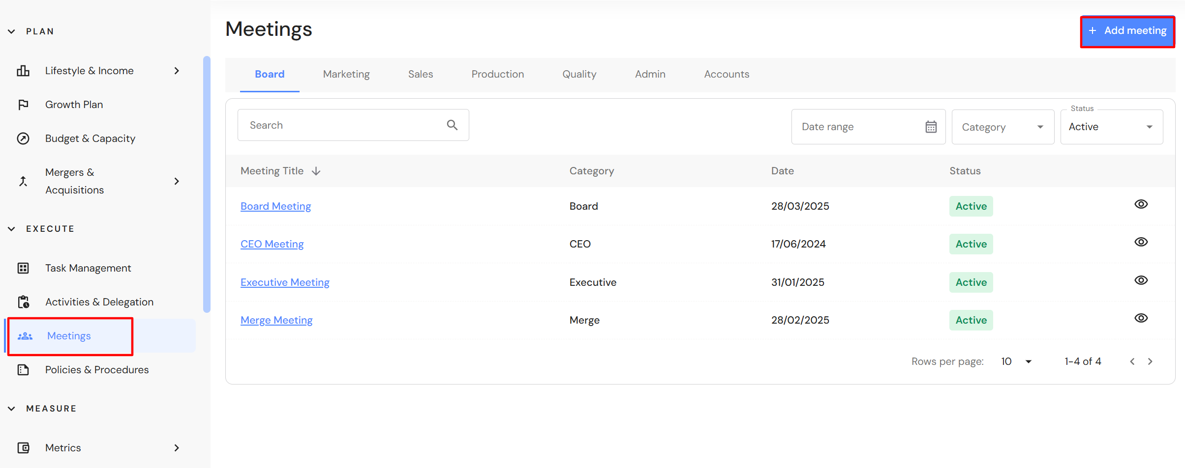 Go to Execute > Meetings