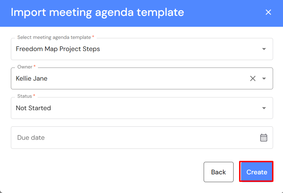 - Select a due date to be assigned to each agenda item (optional).