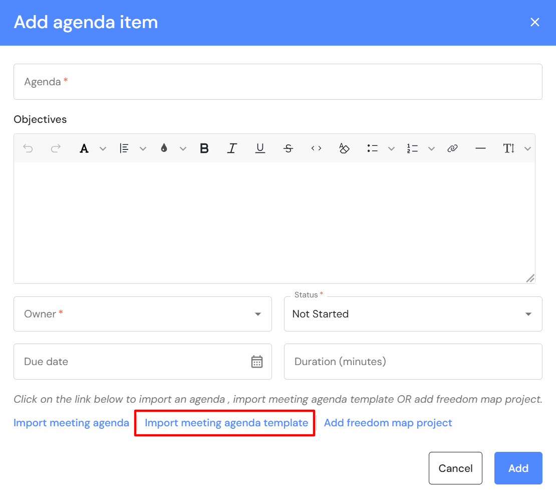 - Click on 'Import meeting agenda template'.