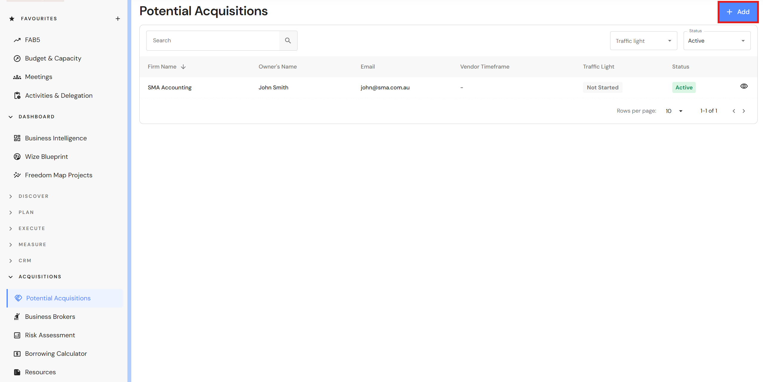 Go to Acquisitions > Potential Acquisitions