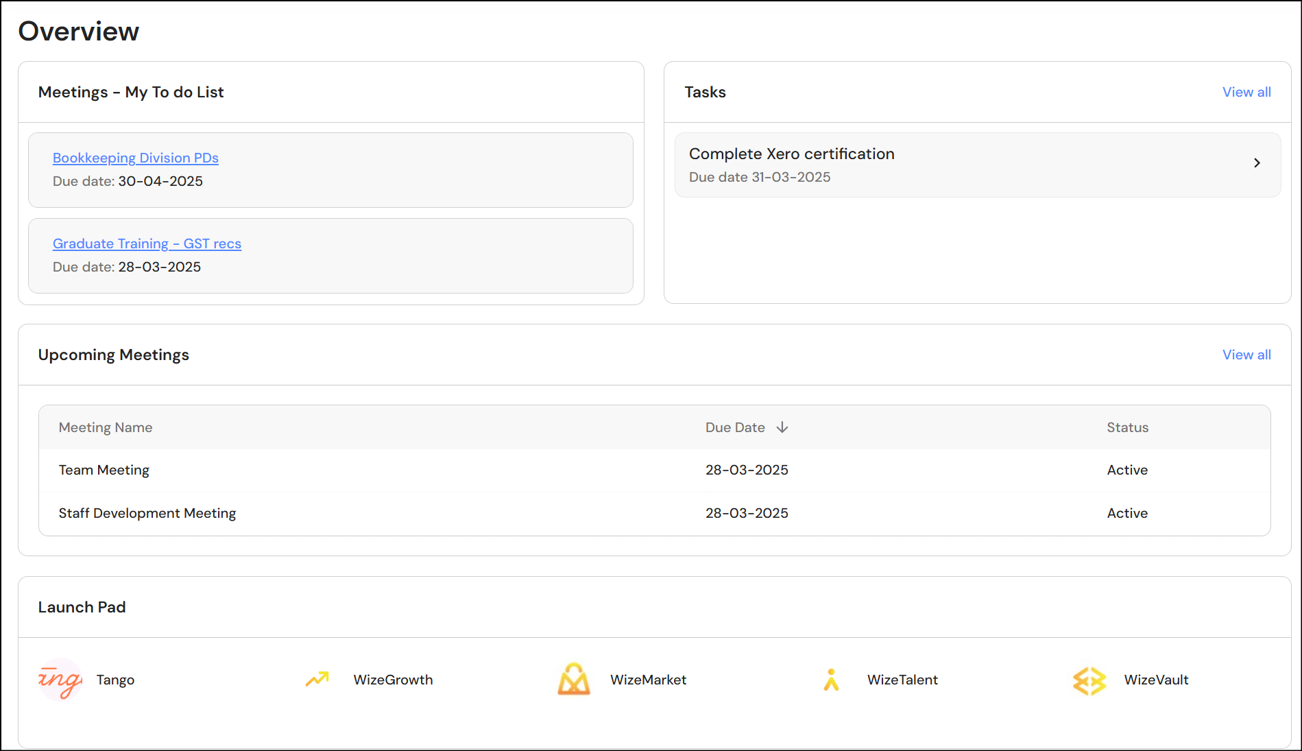 We have created a simplified Overview dashboard for Senior Client Managers, Production Team, Administration Team and CFO users.
