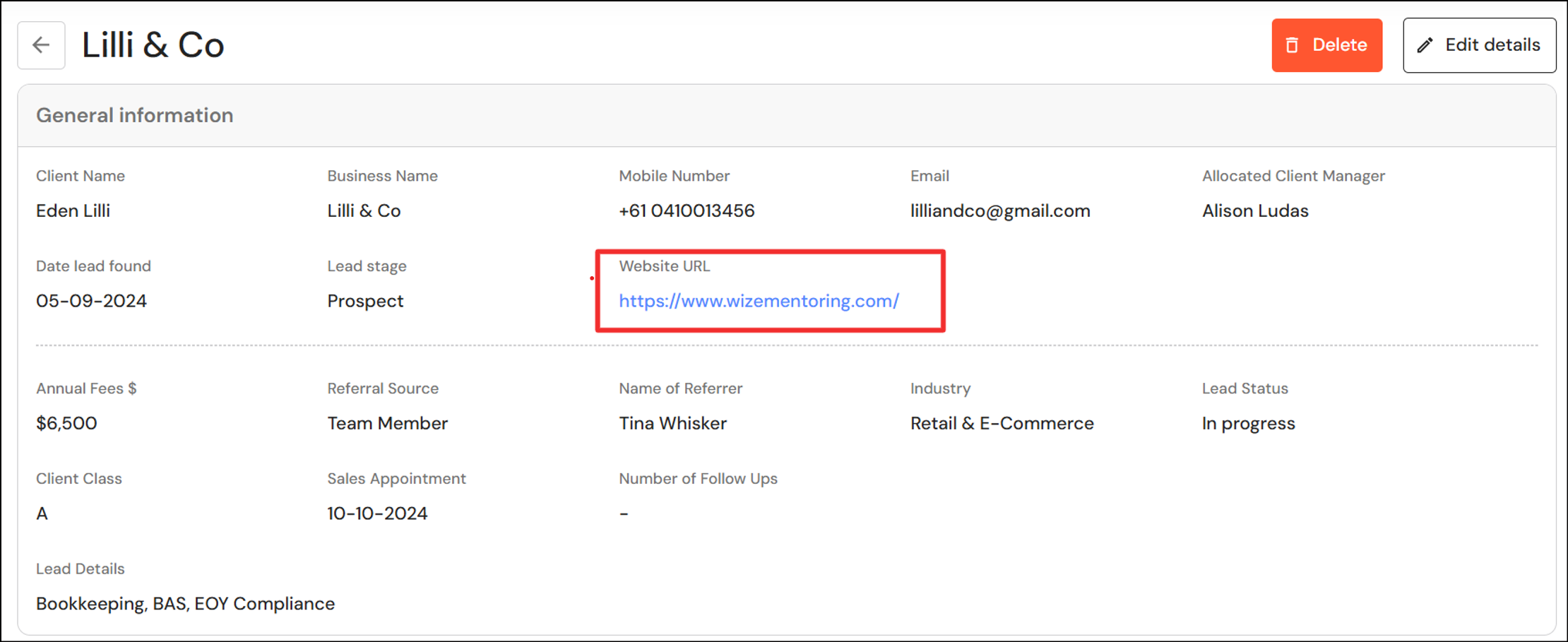 You can now add a hyperlink to the website of your leads. To add a hyperlink, copy and paste the URL from your web browser into the Website URL field in leads.