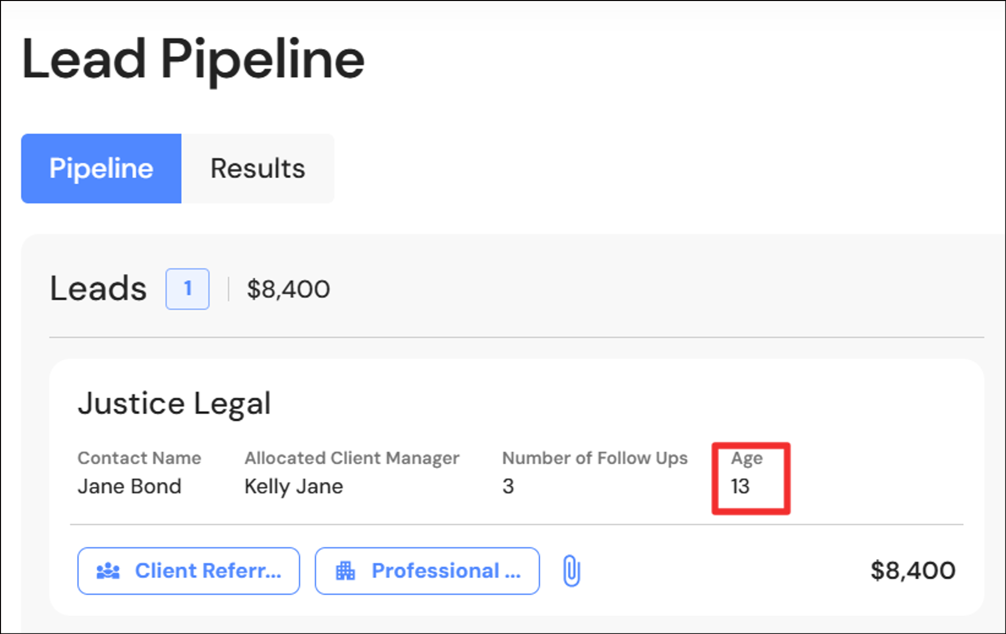 We have added the age of leads to help firms to take action on 'old' leads and prospects in your pipeline. The age column has also been added to the list view.