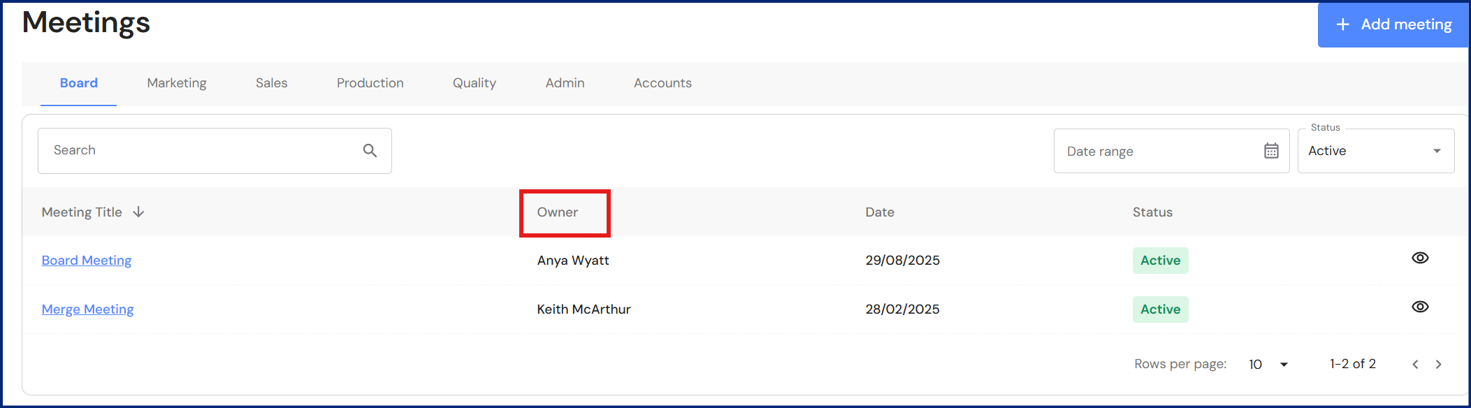 Meeting Categories