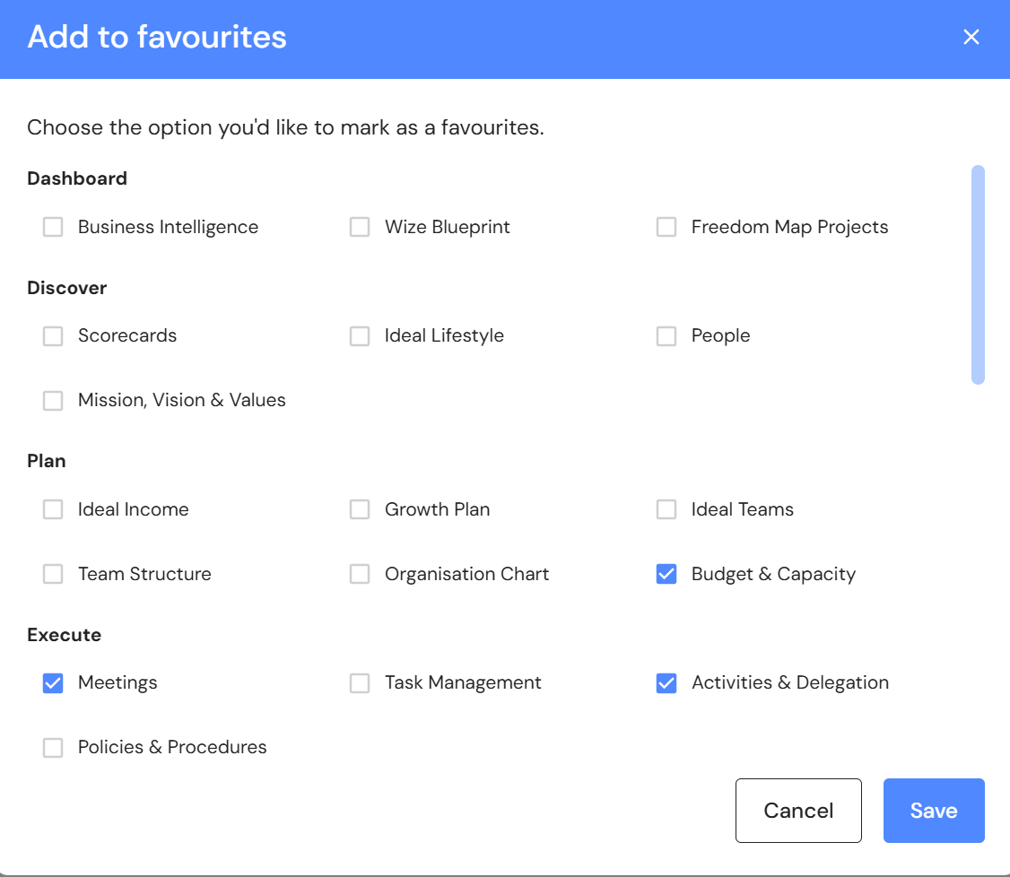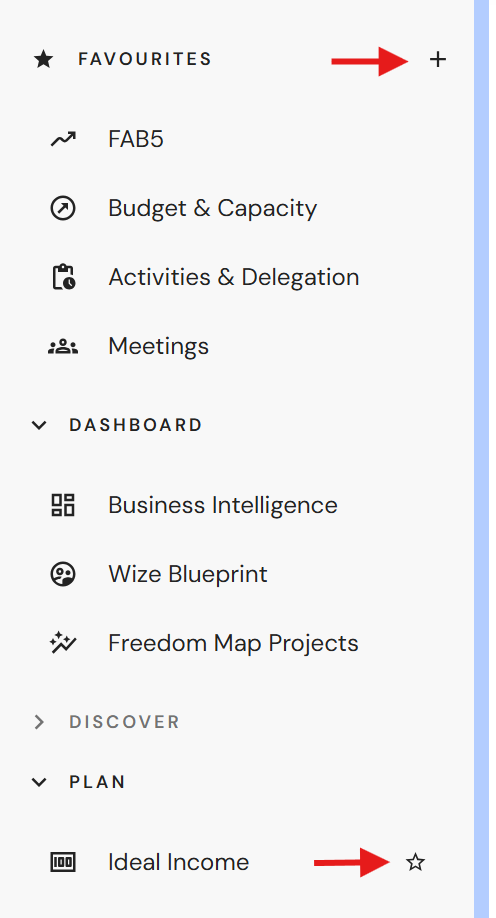 You can now save your most used modules for quick access. Just click on the star next to a module in the side menu to add it to your favourites list. When the Favourites menu appears, click on the + icon to bulk add more items.
