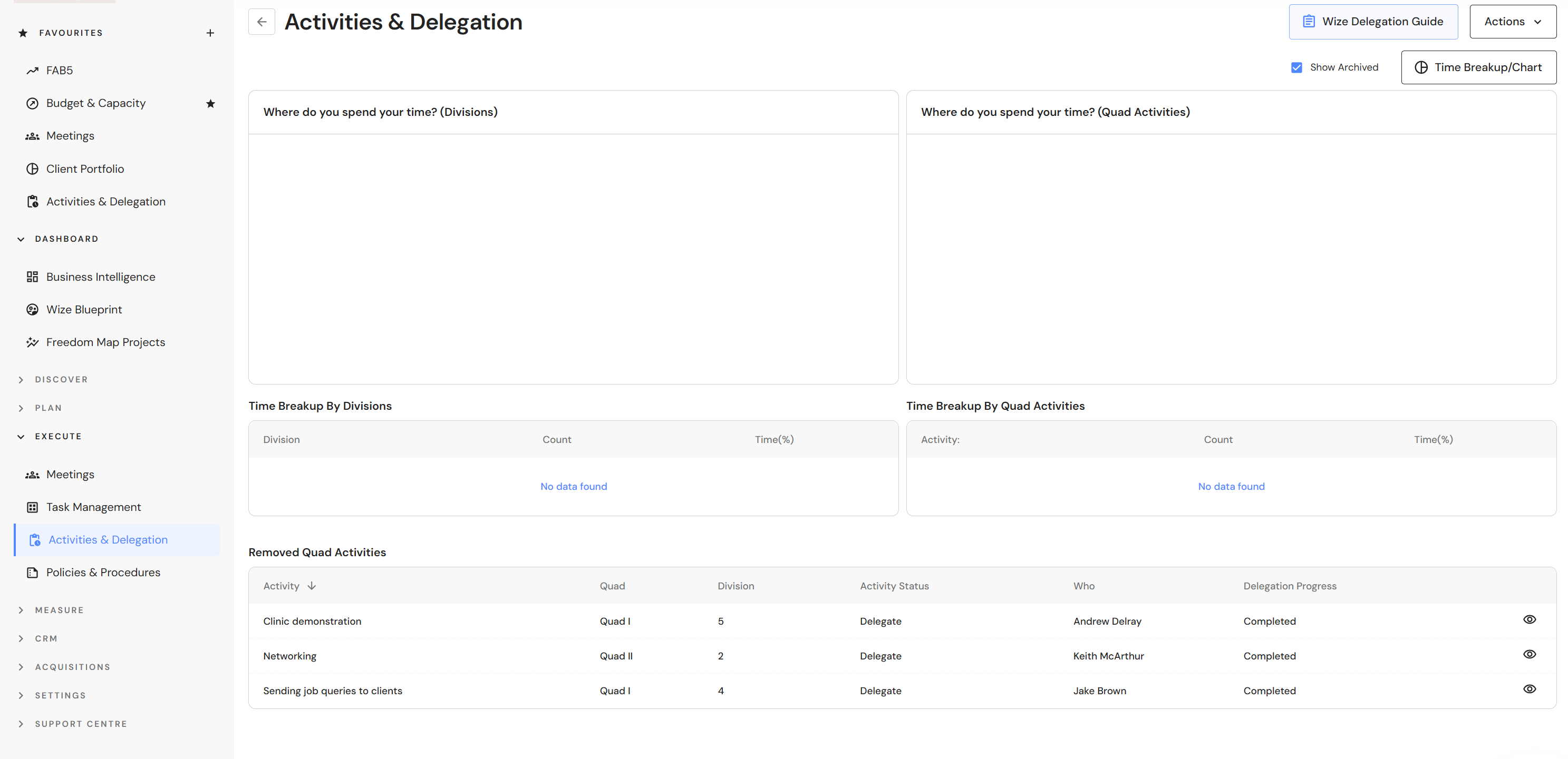 Users can now view archived activities in the time breakup/chart.