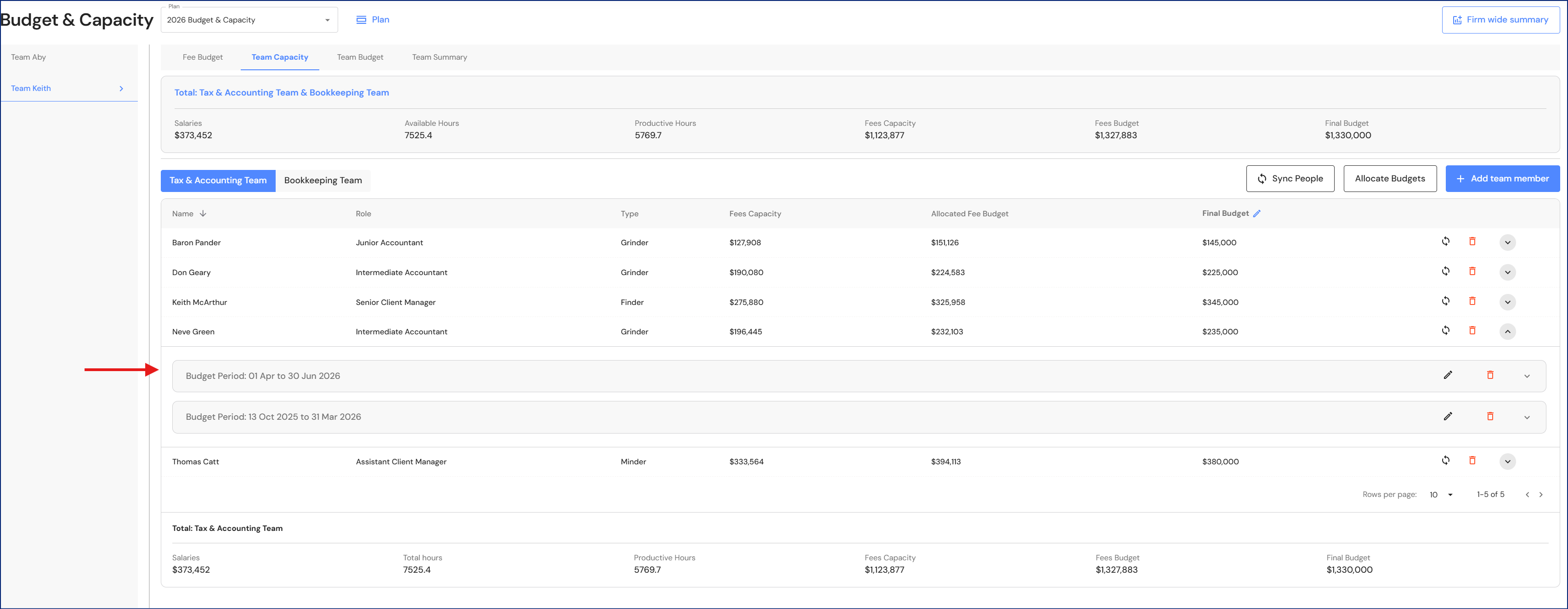 - The ability to add new staff to the capacity plan with a budget period coinciding with their start date.