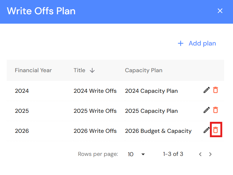 Delete a Write offs plan