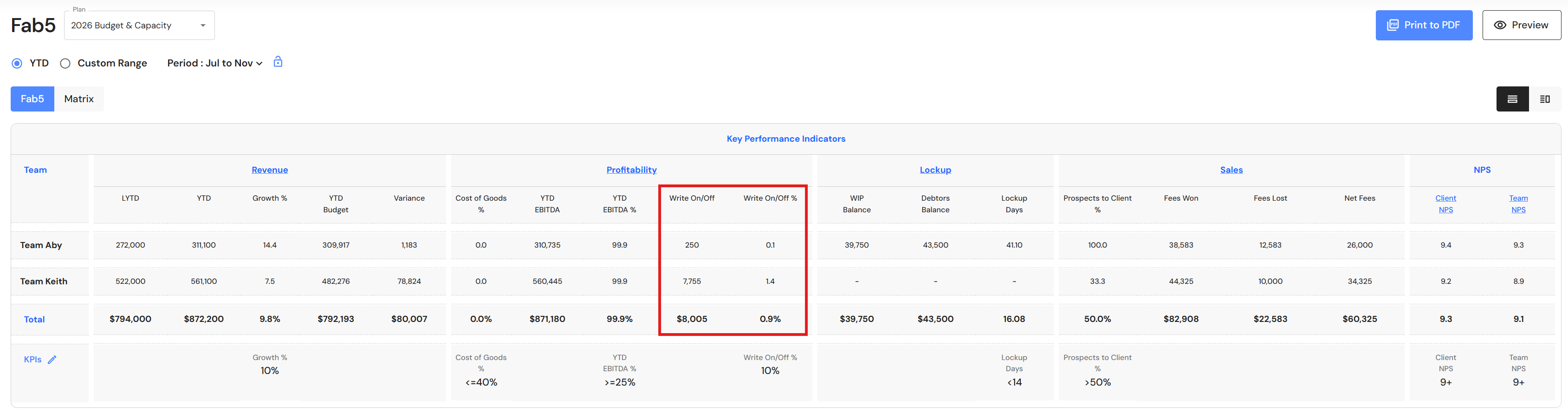 Go to Measure > FAB5 to review your Profitability KPI.